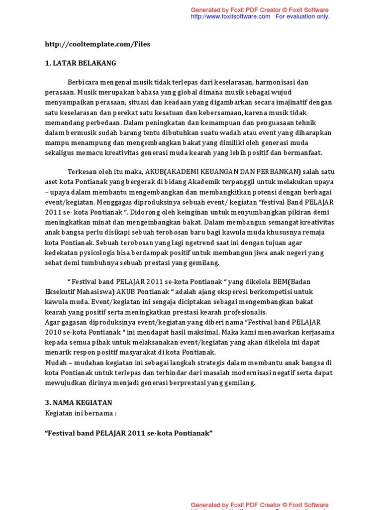 Contoh Proposal Kegiatan Band - Proposal Kegiatan Perpisahan Sma Tahun 2017 : Contoh proposal festival band 1.. Adapun maksud diadakannya kegiatan ini adalah sebagai bentuk rasa syukur kepada tuhan yme dan . Band sponsorship proposal filename contesting wiki via contestingwiki.com. Contoh proposal kegiatan festival musik. Inilah contoh cover proposal kegiatan yang menarik. Berikut nakke share lagi contoh proposal kegiatan seni dalam hal ini proposal kegiatan festival band se .